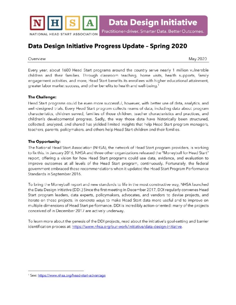 This initiative helps build capacity for using data and evidence to advance outcomes for Head Start children and families.