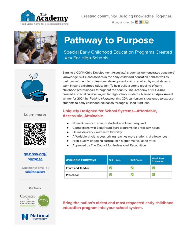 In partnership with Harmony, The Academy at NHSA is proud to introduce CDA Pathway To Purpose-a program that allows high school students to access The Academy at NHSA’s CDA coursework at no cost!