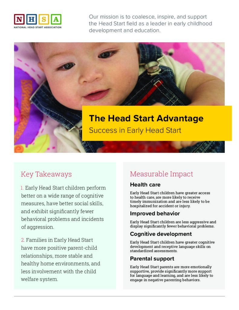 Poverty and economic inequality can negatively impact a child’s development in many ways, including threatening the wellbeing of their caregivers. Maternal depression affections child development both in utero and in the early years. Early Head Start offers a wide range of services to help parents increase their knowledge, skills, and attitudes related to parenting, as well as enhance their own well-being, including prenatal and postpartum health care, housing and food security, parental education, employment, and more. Early Head Start parents are more emotionally supportive, provide significantly more support for language and learning, and are less likely to engage in negative parenting behaviors.